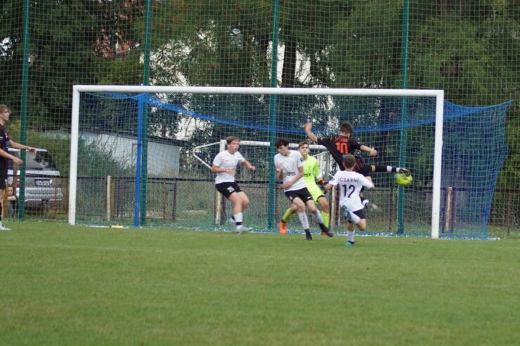 Do końa pierwszej połowy niewiele się działo. Nasi piłkarze atakowali, ale nie mogli stworzyć dogodnej sytuacji. Nasza obrona świetnie odpierała wszelkie próby ze strony Czarnych.
